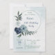 vit & blå blomster grönska krans födelsedagsfest inbjudningar