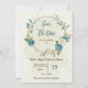 En vacker romantisk inbjudan från bröllop spara datum med blå och elfenbensvita blommor och lite guld löv. OM DU VILL HA MER MATCHING PRODUCTS klickar du på samlingen ovan eller kontaktar mig
