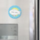 Den vita blåsan stil i tecknad, teckning. Bright gult sol i bakgrunden. Anpassningsbar magneter. Redigera namn på ballongen för att anpassa den. Gift idé.