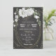vit blomma grönt löv svart bröllop inbjudningar