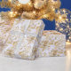 Celebrera din vigsel, årsdag, brud shower eller födelsedag med denna vackra vita och gyllene blommiga design med blommande blommor med kronblad vida utspridda, omgivna av snygga stjälkvrider och en vit bakgrund. Detta sommar- och vårblommiga mönster är också lämpligt för decoupage-projekt. Förvandla det vanliga till det spektakulära med detta tidlösa och eleganta presentpapper.