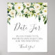 Vit blomma och grönt datum Burk-tecken Bröllop Poster
