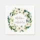 Vit blomma och Grönt Napkins i Bröllop Pappersservett