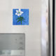 vit blomma på blå målarmagnet magnet