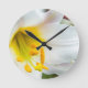 Vit blomma stäng upp rund klocka