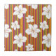 Vit blommar på en randig bakgrund kakelplatta