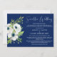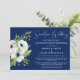 Vit Blommig Akvarell Marinblå Mindre Bröllop Meddelande