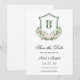 Detta vackra vita blommiga krans bröllop Spara datum-kort med brudens och brudgummens initialer skulle vara perfekt för ditt bröllop. Dess formulering är traditionell men modern och teckensnitten är utsökta. De vita akvarellrosorna, peoniorna och daliljorna och det luftiga grönskandet är fantastiska tillsammans.
