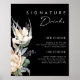 Vi designade denna skylt för signaturdrycker i vitt floralt | svart för att komplettera din rustika mörka tropiska bröllopsfest. Med sin bohemiska vattenfärggrönska och sina moderna boho-vinterblommor, inklusive protea, dahlia och torkad lotus, är designen säker på att framhäva ditt stämningsfulla, minimalistiska tema i svart och grönt. Ändra texten och lägg till ett foto för att göra det till ditt eget. Se också till att titta igenom resten av kollektionen för att hitta koordinerade föremål som kommer att knyta samman hela ditt bröllop! https://www.zazzle.com/collections/white_floral_collection-119896729923706651