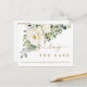 Måste du informera dina gäster i bröllop om att du måste ändra ditt stora datum? Använda det här elegantens vykort. Kartkortsdesign med vattenfärgade vita gräddblommor och grönt löv, på vit bakgrund. På baksidan av vita blommor bouquet. Använda Anpassa verktyg om du vill lägga till din information. Om du vill ha matchande artiklar kan du besöka min uppskjutna insamling av Bröllop Firande.