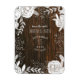 En modern bröllop spara datum-magnet med en gräns av vita blommor, löv och baby över en mörk trä inspirerade bakgrunden. Anpassa texten med information om tillfälle. Leta efter matchande bröllopsinbjudningar och andra samordnande saker på Jill's Paperie.