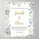 Vit blommigt bröllop välkomstskylt på spanska poster