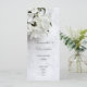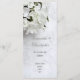 Vit blommigt blombrider bouquet på en vit bröllop klänning. En söt femininin perfekt för utformning av traditionell eller modern contemporary giftermål eller vintertid giftermål. Kan enkelt personlig namn och andra möhippans gästtexter till mallarna för att skapa ditt eget chic-lyxiga program för professionell giftermål för dina speciella händelser och firande. Besök PERSONLIG_ BRÖLLOP STORE om du vill matcha koordinerade uppsättningar av bröllop-svit.