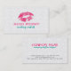 Elegant - enkel makeup-mall för visitkort för konstnärer med vit blommigt - skadad bakgrund och rosa läppar. Fullständig mall för visitkort för anpassade