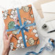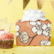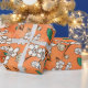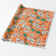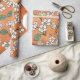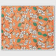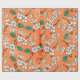 Vita blomman mönster med grönt löv på orangens bakgrund