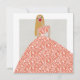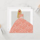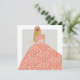 Fashionistkvinna som bär en lång klänning med vita blommor och löv. Du kan byta färg i klänningen genom att byta färg i bakgrunden. Les Demoizelles glam mode illustration på ett tomt kort. Hand plockade och digitalt avslutat. Ram, skicka det med ett kort-meddelande eller använda det som ett bokmärke med en personlig bekräftelse på din egen tillväxt.