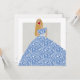 Fashionistkvinna som bär en lång klänning med vita blommor och löv. Du kan byta färg i klänningen genom att byta färg i bakgrunden. Les Demoizelles glam mode illustration på ett tomt kort. Hand plockade och digitalt avslutat. Ram, skicka det med ett kort-meddelande eller använda det som ett bokmärke med en personlig bekräftelse på din egen tillväxt.