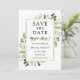 Modern Watercolor Eucalyptus Greenery White Blommigt Guld Ram sparar meddelandekortet för Förlovning av datum