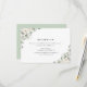 Ett informationskort för bröllopsmottagning med ett grönt tema och vita blommor för bröllopsmottagningen. Du kan anpassa texten och färg för att matcha ditt eget bröllop-tema.
