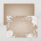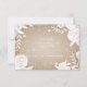 En enkel, modern inbjudan från bröllop r.s.v.p. som innehåller en gräns av vita blommor, grön och baby andedräkt över en kardstock inspirerad bakgrund.