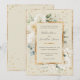 Den fantastiska eleganten och guld arrangerade bröllopsinbjudan med vit ros, vattendrag, frisier med blandade gröntar av eukalyptus och guld hand plockade-löv användes för att skapa detta vackra inbjudan. Bakgrund till Cream färgad. Vackert! Faux guld stänk på framsidan och baksidan för att skapa chicens utseende.