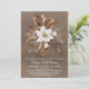 Sofistikerade vita blommor omges av neutralt grått, brun och svart löv. Den vita texten är en chic som består av upphöjda bokstäver och kalligrafierad text. Taxfärgernas bakgrund ramar dem alla perfekt.
