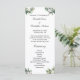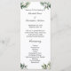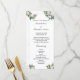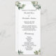 En enkel vit blommigt i eleganten med ett grönt bröllopsprogram-kort. Lägg till ordningen för ceremonin och namnen på framsidan. På baksidan finns det utrymme för Brudens sida namn.