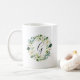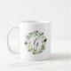 Vit Blommigt Utandning Monogram Kaffe Mugg med vattenfärgad grönt blad med vita blommor. Om du vill ha en mer avancerad anpassning av den här designen klickar du på knappen Anpassa. Matchande objekt är också tillgängliga.