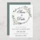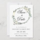 Tidlös och elegant blomsterdesign med rosablommande vita blommor och djupgröna blad. Tillsammans skapar de en krans som omger orden Spara datum. Era namn, bröllopsdatum och plats följer. Spara datum är skrivet med en vacker och traditionell scriptfont. Samma typsnitt används för formell inbjudan följer. All text är redigerbar. Denna artikel koordinerar med kollektionen Tillsammans.