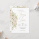 Vit blomsterbröllopsinbjudan, grönbröllop, elfenbensvit bröllopsinbjudan, krämfärgad blommig bröllop, tropisk bröllopsinbjudan