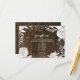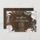 En rustik och elegant bröllopsmottagningskort med en illustration av gipsört, blad och blommor på en bakgrund inspirerad av lada i trä.