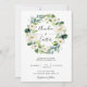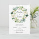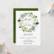 Vit bröllopsinbjudan med blomsterkrans bestående av akvarellmålade vita blommor med grön lövverk. För avancerad anpassning av denna design, vänligen klicka på "Anpassa"-knappen. Matchande artiklar finns också tillgängliga.