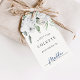 Vit blomsterlig eukalyptus bröllopsduschdisplay presentetikett