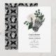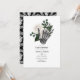 Whimsisk vintage blomsterrik gotisk skelett hand bröllopspar inbjudan i accenter av vitt kan anpassas till ditt evenemang. Perfekt för alla teman eller trädgårdsbröllop