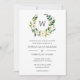 Sofistikerade bröllopsinbjudningar i blommigt har en andedräkt av vattenfärgen vit ros, peonier och andra vita blommor med lush grönt botaniskt blad och löv i olika gröntar, som omger ett enda monogram. Anpassa med din bröllop-information under. En elegant som ändå är ett rimligt val för bröllop någon säsong på året. Kortet återgår till en styrd grönt. Den här designen ingår i en samling och tillbehör till White Bloom bröllop. Om du vill ha anpassningsbar kontaktar du oss med knappen nedan eller skrivor ett e-postmeddelande på citronelladesign@gmail.com