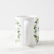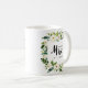 Före bröllop, visa ditt framtida nya efternamn med detta roliga framtida MRS. Typografi MUGG med en blommigt ram av vit ros och löv samordnat med insamling och tillbehör till White Bloom bröllop.