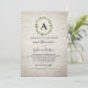 En virtuell bröllopsinbjudan till boskapskamrat med en illustration av gröntens krans över vit tegelbakgrund med svart text.