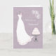 Vit bröllopsklänning på lila brudtjänsteflicka inbjudan
