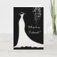 Vit bröllopsklänning med vackra blommor och fjärilar på svart bakgrund Brudtärna förfrågan gratulationskort.. Du kan anpassa texten efter dina behov. Några bilder är från Riefka design på www.mygrafico.com