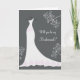 Vit bröllopsklänning på svart bakgrund och virvlar Brudtjänste begäran hälsningskort.. Du kan justera texten enligt dina krav. Några bilder är från Riefka design på www.mygrafico.com