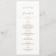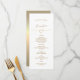 Tillägg tidlös elegans till din bröllopsfest med denna minimalistiska vita bröllopsmeny med varje gästs namn i graciös script och en romantisk symbol för ett gyllene rep hjärta. Med sin rena layout, mjuka elfenbensvita bakgrund och klassiska serif-typsnitt i guld är denna meny perfekt för moderna, eleganta eller kustinspirerade bröllop. Det personliga gästnamnet gör det både till ett stilrent platskort och ett minne som dina gäster kommer att värna om. Redigera menyalternativen och namnen enkelt för att passa din fest.