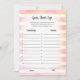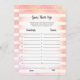 Njut av att spela den här gissningen att deras barn duschspel på mjuk, koral och vit rand bakgrund. Cute, vit, kanin på baksidan med mallar skapat för dig.