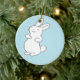 Vit bunny i blått julgransprydnad keramik
