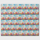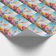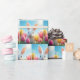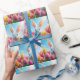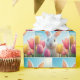 En flytande vit kanin med stort öron omges av färgstarka tulpaner, som baskar under ett ljust, ljust himmel