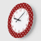 Vit centrerar röd bakgrund för liten vitpolka dots stor klocka
