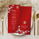 Vita körsbärssymboler och en lyckosymbol för guld dubbla på en strålande röd bakgrund. Med anpassningsbar brid och groom namn, bröllop-datum och anpassningsbar-menytext. Baksidan är initialer som ska förändras.