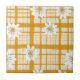 Vit Daisy Blommönster på Gult Gingham Kakelplatta