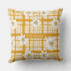 Ljusa och glada mönster dekorativ kudde med vita, stiliserade daisy-liknande blommor med soliga centrum för gult över en varm gult och benvita gingham bakdroppar. Perfekt för retro-, cottagecore- och vår-inspirerad design. Den här nya och lekfulla blommigten ger en aning solig charm till alla inställningar.