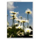Blommor av vit daisy med blå grumlig himlar som bakgrund