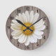 Vit Daisy Blommor på Grått Wood Round Clock Rund Klocka